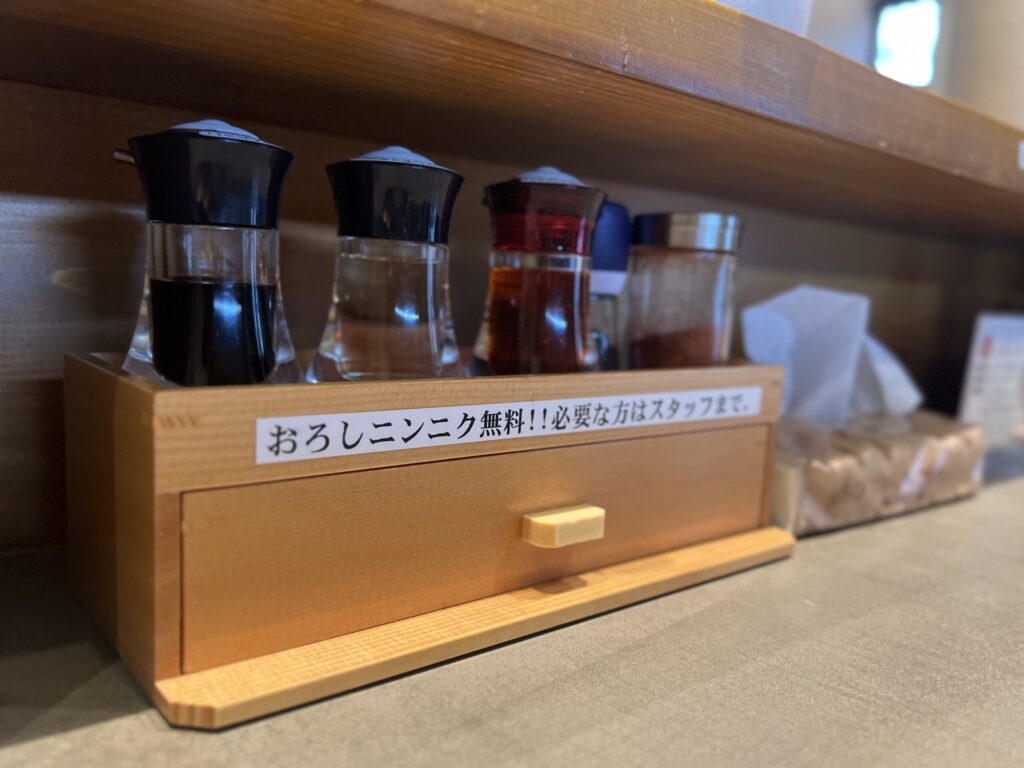卓上の調味料はこんな感じ。